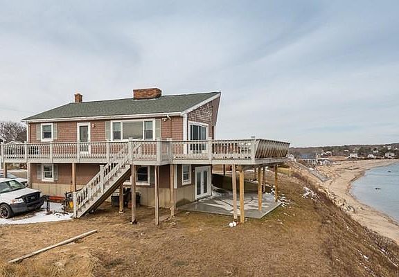 Where do you want to spend your time? Breathtaking panoramic views from inside your home or on the enormous deck overlooking Cape Cod Bay? This home is not for the summer only! This elevated lot allows you privacy and private beach access.Two spacious floors of oceanfront living with two modern kitchens, two full baths, vaulted ceilings, and two wood burning fireplaces. The open floor plans are perfect for entertaining. Enjoy the beautiful fireplaces to warm your chilled feet in the winter while watching the waves crash below. The bright sun shining down on the deck is never too warm since the breeze is constant and steady enough to keep you happy. This home is a must see!