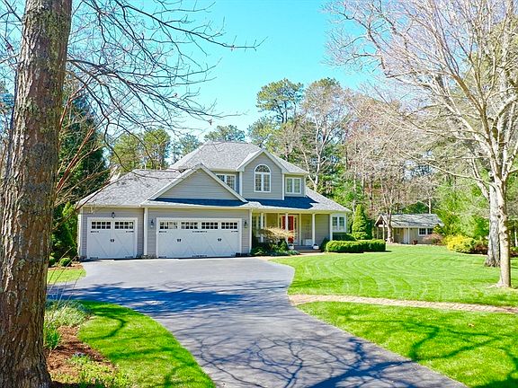 Spectacular POND VIEWS are the key to this property~set on 1.5 acres of tranquility.This home as all the extra's you would expect such as 3 car garage with decorative doors, newer 3M architectural shingled roof, professionally landscaped grounds w/ irrigation, maintenance free exterior trim and Timber Tech composite decks, two out buildings, outdoor dining & firepit area w/ easy pond/beach access & kayak storage. The formal entry leads to a stunning open floor plan w/ vaulted ceiling living room, gas fireplace & two story wall of windows that brings the outdoors in. Newly remodeled kitchen w/ loads of storage, custom cabinetry, luxurious quartz counters & italian stone tile floors.True 1st floor living w/ the primary suite offering a spa like bathroom, double sink vanity, signature brass fixtures, radiant heat floors & custom walk in closet.The 2nd floor has two large bedrooms, full custom bath & loft. Lovely finished basement for added space -A MUST SEE!