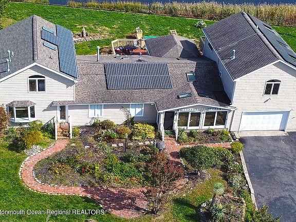 Beautiful Sunsets can be yours from this property with 4,370 sq.ft. of living space sitting on over a half-acre & 151' overlooking the Manahassett Creek. Enter the Main House area through the front Sunroom featuring a marble floor with oak accent, two skylights & two 8' sliders then directly through or a Foyer area with oak flooring a quest closet into the Family Room featuring oak floor, recessed lighting & two skylights that is also open to the Kitchen featuring laminate floor, raised panel Alabaster colored cabinets, breakfast bar, granite counters, tiled backsplash, pantry & stainless steel appliances. Dining Room is cathedral and features a bow-window, gas fireplace & three sliders to the deck. Den has ceramic tiled floor & two sliders to the deck. Laundry Rom also with ceramic tiled floor, washer, dryer & utility sink. Completing this first floor are an Ensuite Bedroom with oak floor, full private bath & slider to the deck, two other Bedrooms with oak flooring & another full bath featuring a skylight, ceramic tiled floor, tub/shower unit & linen closet. Mother/Daughter aspect features an Apartment with it's own separate entrance into a ceramic tiled Foyer, full Bath with cathedral ceiling, ceramic tiled floor & fiberglass tub/shower unit. Living Room with oak floor & two sliders to the deck, Laundry closet for a stackable unit while the Kitchenette area completes the first floor. Second floor features a spacious Bedroom area with oak floor & slider to an upper deck, two walk-in-closets & full private Bath with oak floor, tiled half walls & custom corner shower. You will also find a "Generac" 20KW generator, Solar Panels & so much more. The potential is endless and the price reflective of the TLC needed. Property is also located across the street from Manahassett Park that includes Walking/Running Paths, Soccer Field, Basketball Court, Tennis Court, Pickle Ball Court & Playground.