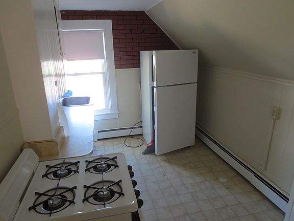 Here's an unlikely location for a downtown 1 bedroom. This is a 3rd floor unit that has a studio price and a good size foot print. Also has amazing location feels like outskirts location for the 3 unit on huge 1 acre lot right in middle of downtown. Unit has heat, water, sewer, lawn and snowplowing included. Parking spot included off street as well. Has small entry (room for table if desired), bedroom, bath, living room and Galley style kitchen. Price is $575 and is available immediately Studio Price for a Good Sized 1 BR!