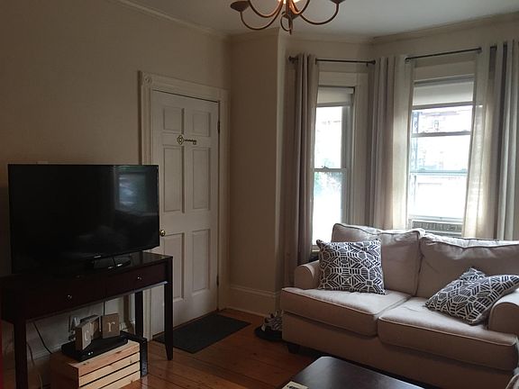 This spacious 1 bedroom condo feels larger than it is because of the tall ceilings, bay windows and hardwood floors. In a condo association with 14 units, this unit is conveniently located on the first floor and close to Medford St. Includes 1 car parking but street parking is close by and accessible if there are two cars. Tenant pays for utilities and owner to pay for water and maintenance. Washer/Dryer exclusive to the unit located in the basement along with extra storage. Newer kitchen and appliances. No pets, no smoking. Private deck off the back door. Common covered deck off the front door. Walk to many things including Magoon Square, Tufts park, Trum Field, bus stops to Lechmere and Sullivan Square on the orange subway line, new T line subway stop! Close to 93 to commute into or out of the city.