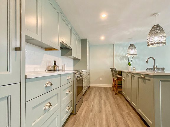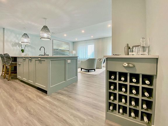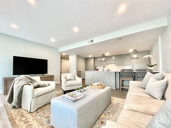 The Belmont offers a Beachfront resort lifestyle. This spacious 2 bedroom 2 bath condominium is only steps to the private sandy beach, pool, and restaurant. In 2020, this condo was completely renovated and exquisitely designed by Sacha Jacq Interiors; it has a bright, contemporary open floor plan unlike any other unit of this kind. The living area has sliders to the exterior balcony with peeks of the ocean; the kitchen boasts upgraded cabinetry, a large center island with sandstone counters, a built-in dining area, high-end appliances, and under-counter lighting. The primary bedroom suite has a walk-in closet, a stunning new bathroom with a double sink, a tile floor with radiant heat, and a shower with glass doors. The guest bedroom also has a slider to the balcony. The guest bathroom has been remodeled and includes a stylish trough sink with two faucets and a stackable washer and dryer. All closets include custom design by California Closets. Other amenities include tennis courts, bocce ball courts, a childrens play area, and entertainment in season at the restaurant: on-site management, professionally landscaped grounds, and gated entry. Come for the summer or enjoy yr. round.