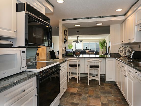 Coastal Living on Nantucket Sound begins at The Belmont. Enjoy ocean views in this spacious 3 bedroom 2 bath condo. The interior is expansive and sunlit. New tile flooring and carpet welcome you into the living dining room. The open updated kitchen features white cabinetry and granite with a breakfast bar to watch the boats passing. Master bedroom has en-suite bath and a private balcony. Guest bedroom with balcony. The third bedroom doubles as an office with a customized wall unit work space and ample room for additional guests. Laundry room with storage. Oceanfront cabana offered separately. Amenities include heated saltwater pool, tennis, bocce, and weekend dining at the private restaurant. Offered furnished with some personal items excluded.