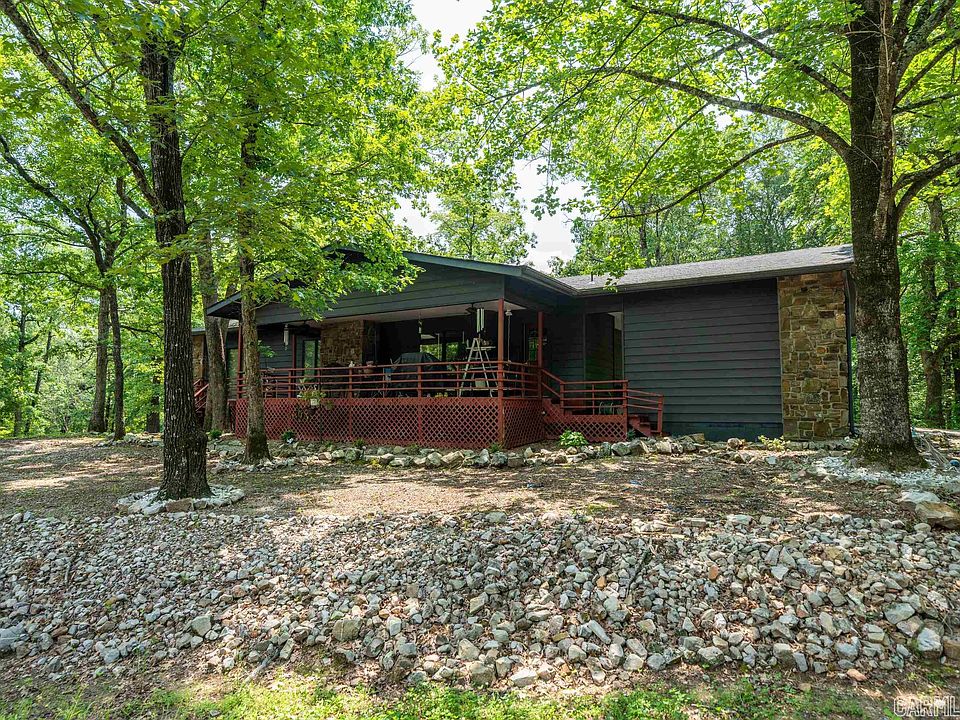 Welcome to this inviting 3 bedroom 3 bath home nesteled in the desireable community of the Hot Springs Village. Rustic features like beamed ceiling, wood paneling, stone fireplace give this home a cozy and earthy appeal. This charming home offers a spacious covered deck, 2 car carport, 1 car garage and bonus room with it's own bathroom downstairs that can be easily converted to another bedroom or in law quarters and is situated on a large corner lot. Hot Springs Village is renowned for its stunning natural surroundings and offers an array of recreational activies such as golfing, hiking, boating and fishing and has a variety of amenities including pools, tennis courts fitness centers and social clubs. Don't miss your opportunity to own this unique home!
