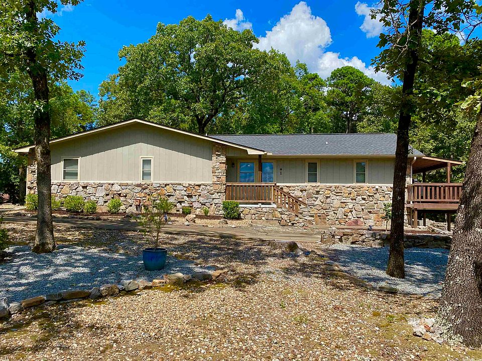Updated rustic ranch style home on a large corner lot. Outbuilding with dog run, circle drive, low maintenance yard. Ample parking, one car carport. Remodeled kitchen and baths. New flooring, ,fixtures ,counter tops and fresh paint inside and out. Main level features 3 bedrooms 2 baths, and a separate office. Downstairs has separate entrance, Den room, bedroom, bath and storage area. Great VRBO opportunity. Roof,hot water heater and appliances all replaced within the past four years. AGENT REMARKS