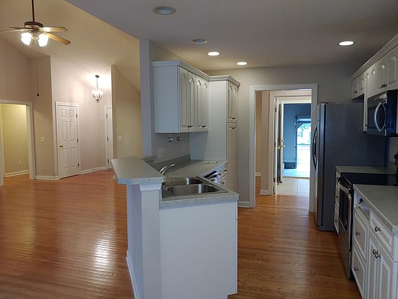 A cozy home with the popular "split plan" (master on one end and the other 3 bedrooms on the other). Hardwood, Ceramic tile and Carpet mix flooring type. Situated on a "slow", "quiet" street. Kitchen appliances included. Washer/Dryer NOT included. Tenant is responsible for their own utilities and for the yard maintenance.