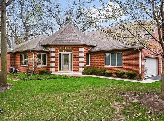 Beautiful all face brick ranch townhouse in a peaceful wooded setting with a great golf course view. Large kitchen has vaulted ceiling and features cherry wood cabinets, granite counter tops with great space including a 4 person peninsula. Living and dining rooms have open concept with vaulted ceiling, hardwood floor, oversize windows and a gas fireplace. Master bedroom includes an 11' walk in closet and a great master bath with large whirlpool tub, separate shower and double bowl vanity. Spacious lower level family room features a 2nd gas fireplace, wet service bar, bar refrigerator and large look out windows. Attached 2 car garage. Comfortable side deck with great views. Other features include 200 amp electric,newer 50 gallon hot water heater, 2 large storerooms, association monitored sprinkler system, large closets and s 6x14 laundry room with sink, cabinets and closets. Best location in this picturesque complex.