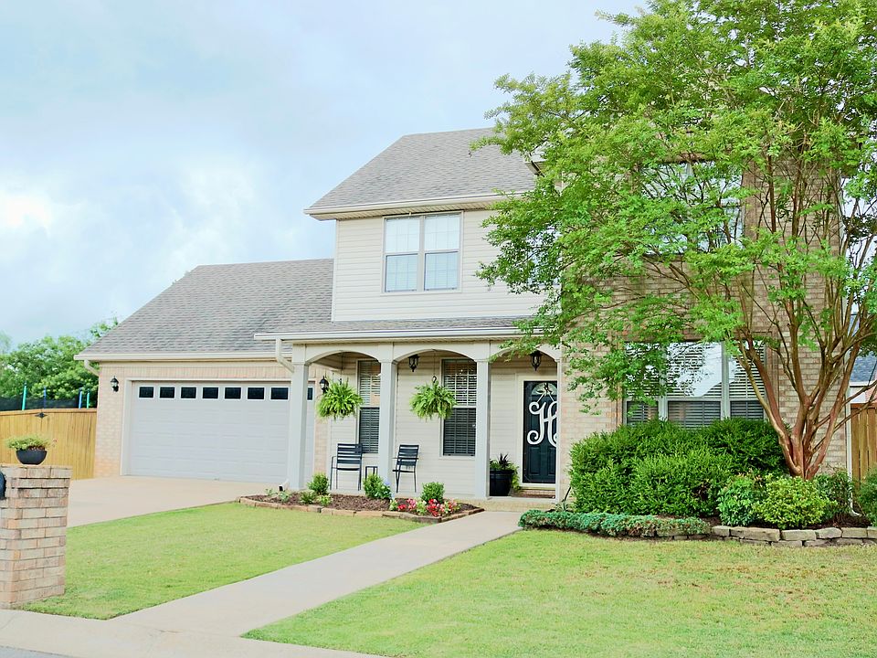 Beautiful, 3 bedroom 2.5 bathroom move-in ready home has 9 ft ceilings throughout, a fireplace with gas logs in the living room, an eat-in kitchen, separate dining room and an office all downstairs. The spacious master bedroom has several windows and room for a sitting area. The master bath has a jetted tub with his/her sinks. Laundry room is upstairs with bedrooms. The home sits on a large flat lot on a quiet cul-de-sac. Front yard is nicely landscaped. Flat backyard is fully fenced and offers a concrete patio. Home has a sprinkler system and a security system. In a great neighborhood, the home is right around the corner from the park. From the home you can access many walking trails. The neighborhood pool is conveniently located at the end of the connecting street. Willing to work with buyers agent. Contact Jeff at 501-749-8949