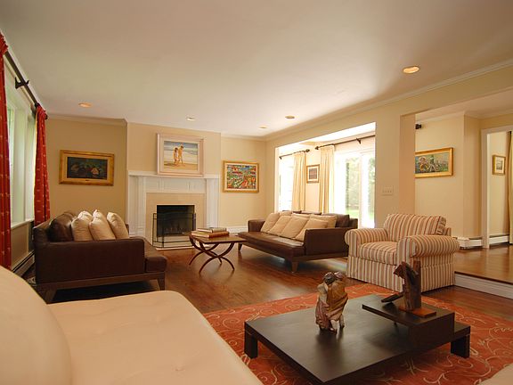 This is a home that brings the outdoors inside. Skylights and oversized doors to the deck abound. The fabulous gourmet kitchen with custom cabinets and top of the line appliances, family room with fireplace,the dining room, living room with fireplace and master bedroom all open to the large deck that leads to the priv.,level backyard. The master features 2 full baths ensuite and a lovely library/nursery. New powder room. Located on a quiet cul-de-sac with a cir. drive. Meticulously maintained.