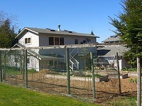 No Bank pebble beach shoreline w/boat ramp fronts this sunbathed cozy PanAbode home -- remodeled 1995. Solarium windows front living room & kitchen walls. LR river rock wall & stone base for Vermont Castings wood stove. Antique wood burning range highlights kitchen (also has typical appliances). Master bdrm w/another wood stove has skylight & 2 decks. Studio w/1 bdrm, bath, bonus area sits atop 2 car garage. Airplane hangar next to home. Not a pilot use as huge garage/shop. Great fenced gardens.
