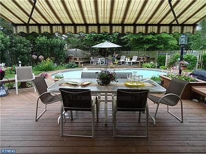 Move right in! Beautifully landscaped and well maintained corner property in the Woods. Hardwood floors on the first floor, Pella and Anderson windows, newer vinyl siding (2006), newer tankless hot water heater (2012), newer gas heater (2008), freshly painted. Updated kitchen with new counter tops, tile back splash, under cabinet lighting, newer sink and dishwasher. Dining Room with French pocket doors to the Kitchen. Family room with gas fireplace, built in wet bar and double sliding glass doors to the deck. Finished garage area currently being used as an office. Large Master Bedroom with walk in closet. Enlarged main and master baths. Backyard garden oasis including two decks, one with retractable electric awning and exterior lighting surrounding the built-in, heated pool. A perfect home for entertaining and relaxing. (Pool is in good, but as is condition.) There is a well for in-ground sprinkler system and all outside water usage. Eastern High School and Berlin Community school K-8. Preschool 3 &4 yr olds.