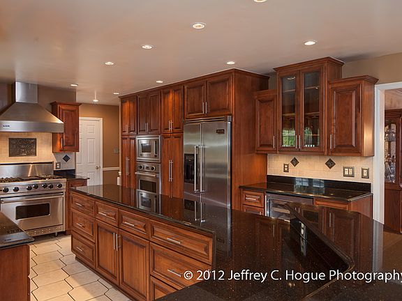 This true 5 bedroom home is located on a cul-de-sac street in Green Valley Estates. There is a finished walk-out basement with a large rear yard that backs to open space. The kitchen was completely remodeled and features floor to ceiling cabinetry, large island/breakfast bar, morning room with patio doors to rear deck, granite tops, tile backsplash & floor, stainless appliances that include a professional gas range/oven with stainless vented hood, wall oven, microwave, dishwasher & wine cooler. The large family room has a brick fireplace & media area along with hardwood flooring & ceiling fans. The 2-stiry foyer is flanked by formal living & dining rooms that have hardwood floors. There is a spacious master suite with a cathedral ceiling & sitting rm/office. The master bath has a vaulted ceiling, skylight, whirlpool tub & separate shower. All baths & laundry have tile floors. The 3-car garage has openers. Total square footage listed includes the finished basement space of 1,296 square feet.