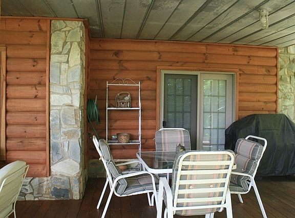 Custom built log home with guest house overlooks Mayo Lake. Well maintained and beautifully landscaped, this home was designed for lake style living. The main level offers a large family room with fireplace, full kitchen-dining area, large bath and bedroom. Both the bedroom and family room open to the deck and covered porch. The private, master bedroom suite is located on the upper level. A balcony overlooks the family room. Lots of glass to bring in natural light and to optimize the lake view. Plus, large bathroom and walk-in closet that provides access to the floored attic. The lower level has a bedroom, another large family room with kitchenette, bedroom and utility/laundry room. A spacious bath offers a jetted tub and separate shower. The office/study may be used as additional sleeping area. Both the bedroom and family room open to the covered patio. Plus, a 820 sq. ft. guest house offers a full kitchen, bathroom, sleeping area and huge living room. Great for entertaining! The 2 car garage also has laundry hookups. The property offers a garden area, fruit trees, and 2 storage buildings. A golf cart trail and wooden steps provide access down to the water. Enjoy fishing/boating and all water activities on Mayo Lake, a 2800 acre lake with clean, deep water located about an hour north of the Raleigh/Durham area near the VA border.