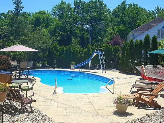 Move right in! This beautiful Toll Brothers Colonial is located in desired Shore Oaks neighborhood, located between the 9th and 11th tees at Eagle Oaks Country Club. Home is situated within a highly rated school district and features 4 Bedrooms (with possible 5th in basement), 2.5 Baths, open concept, large kitchen with island, large family room with vaulted wood ceilings and fireplace. Brand new Whirlpool stainless steel appliances and new neutral carpeting just added! Home features a first floor office, finished basement with storage area, bonus sunroom with French doors leading to beautiful fenced-in yard! Yard features in-ground pool, hot tub, fire pit, stamped concrete and custom pavers. Home is located close to major highways, the beach, and shopping. Welcome Home!