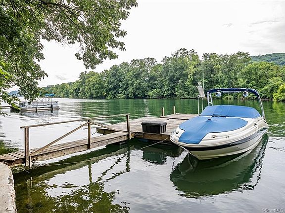 DIRECT WATERFRONT - CANDLEWOOD LAKE in "BOGUS HILL" private lake community. Water's Edge Dock deepwater DOCK- accommodates 2 Boats with potential to add 2 boat lifts and 2 jet skis. This Cream Puff with year round LAKE VIEWS just got another facelift. Fantastic Eat-In Kitchen w/desirable new white cabinets, quartz counters and backsplash. Vaulted/beamed Great Room offers a Dining Area, ceiling fan & skylights includes a desirable stone fireplace/wood stove for efficiency. The Sunroom with it's wall of windows overlooks the lake and has a variety of uses depending on your lifestyle plus french door to large Terrace. Don't miss the outdoor stone fireplace! A choice of 2 master suites in this year round cottage gives you flexibility for 2 bedrooms, with 2 updated baths one on the main level and one on the garden level (with private entrance) or perhaps you need a private work environment. A Pantry plus laundry room on main level w/door to room that doubles as mudroom/sunroom leads to backyard. Ample parking includes private driveway plus 1 car garage and also stone stairs leading to Lake. Community amenities also afford you access to use cute community beach area for additional $200 per year. PLEASE NOTE - BRAND NEW SEPTIC BEING INSTALLED!