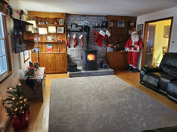 Cape with large living room hardwood floors pellet stove, 4 bedrooms 2 full baths. Two car attached garage, corner lot