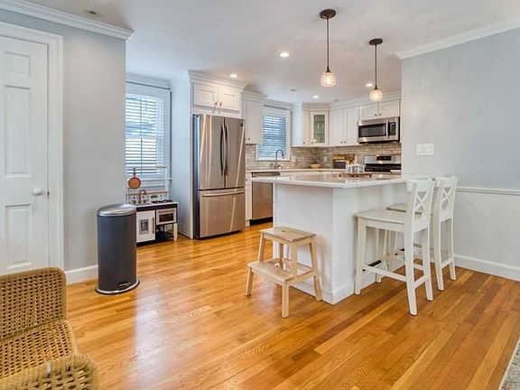 Gleaming hardwood floors, central AC and an inviting open-concept layout await in this remarkable Moss Hill residence! Enter into an expansive first-floor layout featuring an airy kitchen/dining room combo, large living room, and spacious sunroom/office well-suited for remote working. A contemporary eat-in kitchen offers quartz counter-tops, stainless-steel appliances, and bright white cabinetry, while the nearby living room is comprised of original built-in shelving and an authentic marble fireplace. On the second level, a gorgeous master bedroom, walk-in closet and lovely ensuite bathroom can be found at the top of the stairs. Two additional bedrooms and a second full bath are located on the same floor, then a fourth bedroom flooded with natural light is situated on the top level. Enjoy a generously-sized deck off the back of the house, free in-unit laundry, and extra storage space in the basement. Saunter through the Arboretum/Larz Anderson Park and explore everything JP has to offer!