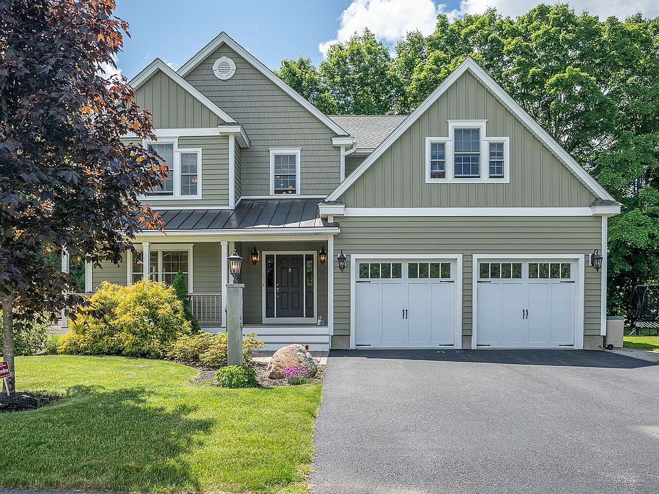Proudly presenting a rare resale in desirable Laughton Farms! This beautiful New England neighborhood offers stunning homes and landscaping, and provides walking trails, recreational facilities including tennis and basketball courts, & scenic open space! 1 Boxwood is a gorgeous Farmhouse Colonial, complete with a welcoming front porch. What lies inside is a beautiful, spacious and open layout! The kitchen is the heart of the home and this one is stunning, featuring an island with white cabinets, granite counters throughout, GE appliances including a gas range, and a sunny breakfast nook, which is open to the 21x15 family room beyond. Cozy up to the gas fireplace or savor peaceful moments in the newly added sunroom! A stunning dining & living room grace the front of the home, and feature beautiful millwork and inlaid hardwood floors. Upstairs are 4 good sized bedrooms, including the master w/ private bath, walk in closet & sitting room. The amazing lower level was recently finished too.
