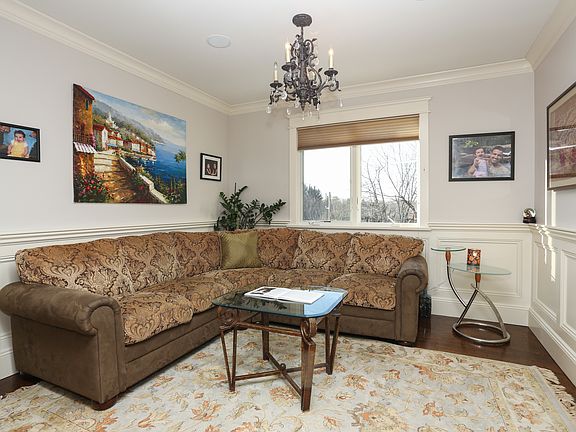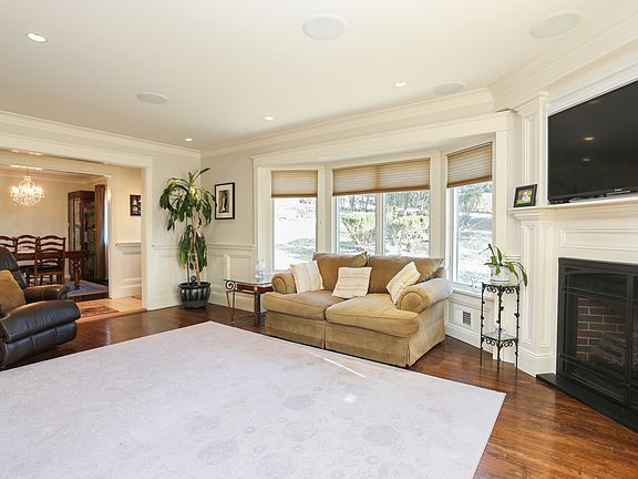 This 4 Bedroom/3.5 bath home has been lovingly cared for and updated. These features include extensive custom millwork, crown moldings, solid wood doors, hardwood floors throughout, and Andersen windows. Living Room has a gas fired fireplace, surround sound entertainment system, and a beautiful bay window. The dining room wall has been opened to give a great flow into the kitchen. The sliding glass doors from the kitchen open onto the deck. Roof has been replaced with an architectural designed material designed to give extended life. Finished basement gives extra space for all your activities. Taxes are quoted without the STAR savings of $2,108