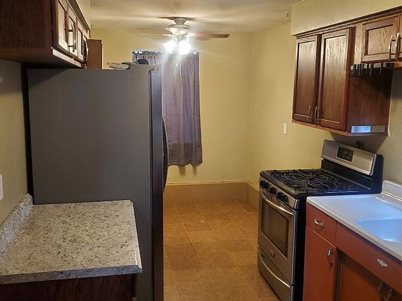 Corner Lot Ranch, featuring 1st floor living. New Roof 2015, and new Furnace 2017. Back yard has patio and fire pit. One car detached garage with remote access. Inside you'll find 2 nice size bedrooms with a 17 x 17 living room for all your entertaining needs. The front yard is fenced for pet owners. The home is being sold as is, but is FHA friendly. close to restaurants, groceries and close to the highway. Realtor to confirm taxes.