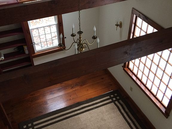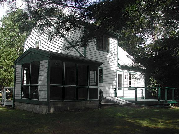 House features side porch, galley kitchen, open dining room, living room with decorative fireplace, office or third bedroom and half bath on first floor, two large bedrooms, full bath and open loft on second floor. Good closet and storage space. Parking area for two cars. Near to schools and mid-Cape highway.