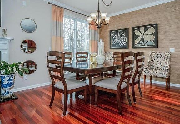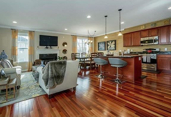 Stunning and impeccable 3BR Revere end unit. This was a model...exceptional details & notable upgrades throughout. Sun-filled main lvl features a fabulous open concept w/designer decor, hardwood flrs, 9ft ceils, & crown mldgs. In addition, center isle gourmet kitchen, dining area, LR w/gas log fpl & chic powder rm. Elegant master bedroom w/vltd ceiling, walk-in closet & luxurious mbth. Two additional guest rms, full bath & laundry rm complete the upper lvl. Wonderful LL family/rec rm. Custom paint colors. Main level entry w/att 2 car gar. Amenities incl clubhouse,fitness ctr,tennis courts & pool. Mins to shopping, train station & movie theatre. Complete rental application, credit/background check and references required.