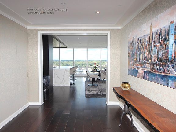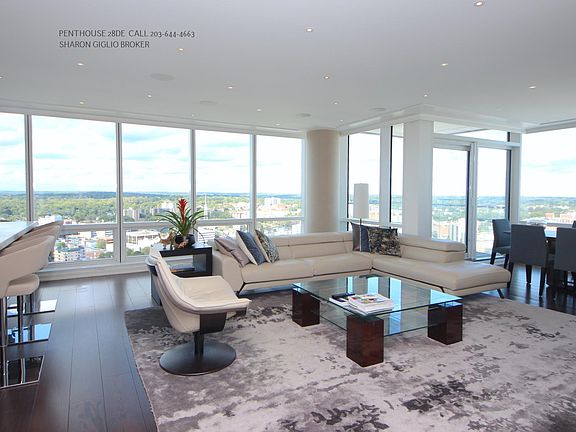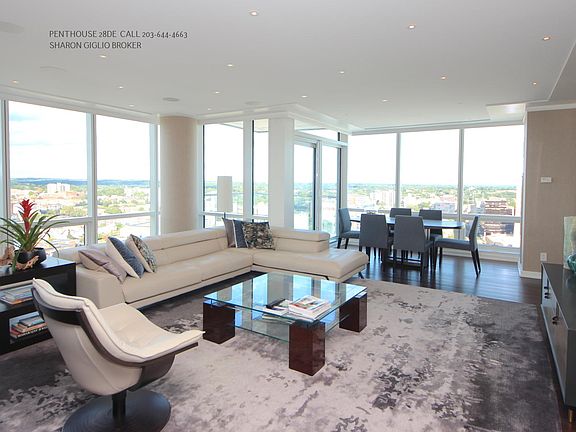 Downtown PENTHOUSE Combo Condo PH28DE - One Level Living at Its Best! Spectacular architecturally renovated combo-double unit with Impeccable contemporary designer details throughout. (3BR 3.5BA w DEN) Breathtaking open concept home with rich hardwood floors in every room, soaring 9ft ceilings, exquisite molding, windows that span wall-to-wall and floor-to-ceiling. Unparalleled views of the Long Island Sound in the incredible Trump Parc Stamford. Unwind in the large and inviting living room, with an adjacent dining room surrounded with windows and flooded with natural light. Gourmet kitchen complete with plenty of cabinetry, sleek white counter tops, top-of-the-line appliances. The handsome office features a beautiful built-in work space. The stylish master bedroom suite boasts an enormous dressing room style walk-in closet, a private deck, and a spa-like bath with a spa tub and a separate shower. Two additional bedroom suites with private full baths. Enjoy top of the line community amenities including 24-hr concierge service, a world class fitness, all season pool, a billiards room, roof top lounge, train shuttle and more. Valet Car 200/m. Most Utilities Included. Fantastic location in the heart of downtown. Longer Term Lease Possible 2yrs. Call today!