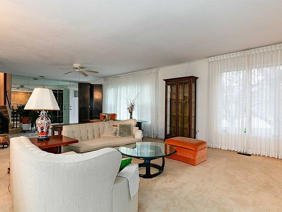 You will be amazed when you enter this lovely split level home and see how spacious it is. Tremendous living, dining room with floor to ceiling windows overlooking the backyard. Beautiful fireplace and built in cabinets add to the beauty of the room. What a wonderful home for entertaining or large family gatherings. Originally a 3 bedroom home, the current owner changed to a 2 bedroom featuring a very large master. It can be converted back legally to a 3 bedroom. Hardwood floors under the carpet in the bedrooms. The lower level is a walk-out and has a nice size family room, half bath and laundry room. A few steps down off the family room is a basement that is ideal for storage. Most of the windows have been replaced. Stay cool this summer with the central air. There is access to the deck and patio from the dining room. Located only minutes from shopping, schools and the train. Don't rule this out because of the bedrooms. You absolutely must see inside.