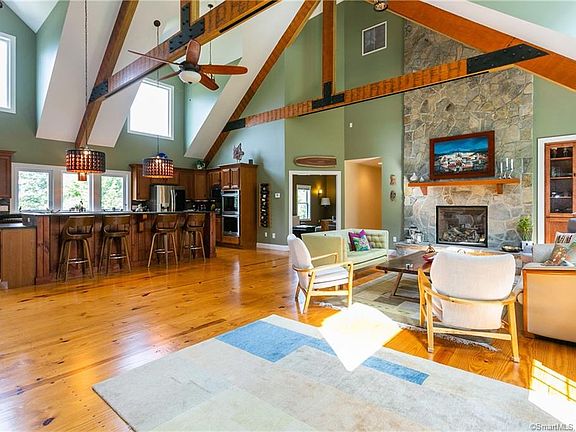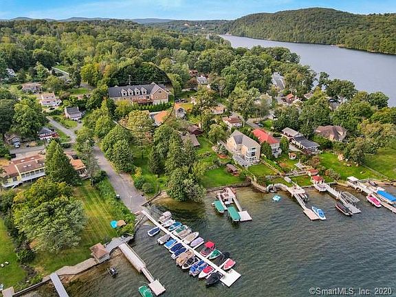 Stunning ranch with spectacular cathedral ceilings in Candlewood Lake Community. Escape and relax to this must see sprawling and stately New England style ranch. Situated on almost 1/2 acres in the lakefront community of Aqua Vista, which features a community beach, boat dockage and social activities. Enjoy summer breezes blowing off the lake on the large rear deck. With 3400 s.f. of living space, a huge 2400 s.f. unfinished walk out basement, and 7 car garage you will never want to leave. The builder of this home spared no expense in construction; Stunning cathedral ceiling, solid wood doors, wide plank pine flooring, TV outlet over fireplace, auto-on closet lights, 90k BTU gas fireplace with built in audio cabinet to right, central vacuum system, radiant floor heating in master bath, dual head shower with seat, custom wiring and outlets throughout the home - including 8 in the garage alone, with a 30 amp RV receptacle. Come tour this spectacular home today, a new lake lifestyle awaits!