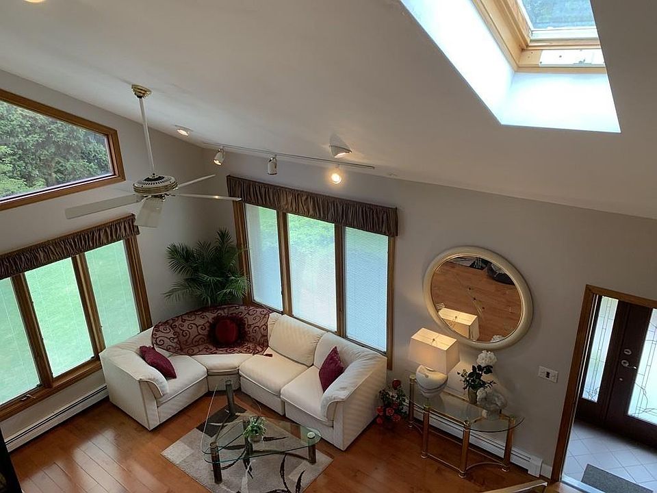 - Liv Dscrp: Exterior Access, Flooring - Hardwood, Main Level, Ceiling - Cathedral, Recessed Lighting, Skylight, Ceiling Fan(s), Closet, Window(s) - Picture, Wainscoting
