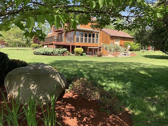 Owners retiring..moving south,,hence drastic price reduction: Live the life! Spectacular 3500 sf custom 3 bdrm, 3.5 bath contemporary lovingly built by owners w/pride. The lavishly landscaped &meticulously maintained 30,000 sf lot complete w/serene waterfall. A seperate well keeps this property in bloom all summer long. Enter into spacious 345sf liv rm w/cathedral ceilings, wainscoting, three sided gas fireplace & grand oak staircase, gleaming hardwood floors throughout. Custom kitchen incl.new stainless steel appliances, granite counters, center island w/sink,dining w/deck & three season room. Enormous 21x23.5x9 media room for entertaining. Master bedrm & bath w/jacuzzi, walk-in closet,2 decks1 overlooking peaceful waterfall. Great entertaining in fully finished walkout basement w/full bath (possible in-law) All updates,new roof, 5 zone heat,central vac. AUTO LOVER'S DREAM! 32' x 32' x11.5 garage & workshop w/12' x 9'overhead doors +16 x 12 shed w/electric.Truly a turn key home.