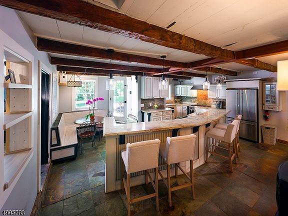 - Kitchen Island, Pantry, Walk-In Closet(s), Dining Area, Eat-in Kitchen, Exposed Beams, Wood Floors, Bar, Breakfast Area, Kitchen - Gourmet, Tub Shower, Additional Stairway