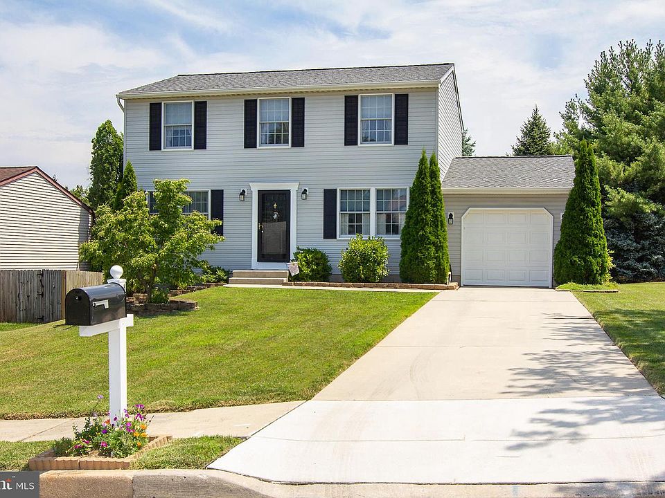 Rarely available single family home in the Evergreen at Putty Hill development. Three bedroom, two and a half bath colonial with one car garage. Home is situated on a lovely corner lot in cul de sac. Well maintained by original owners. Updated eat in kitchen featuring granite countertops and newer appliances. Main level features include separate dining room and living room with hardwood floors, and carpeted family room. Updated half bath. Upper level boasts master suite with walk in closet and full master bathroom. Two additional nicely sized bedrooms. Full, updated hallway bath. Lower level provides carpeted recreation room as well as den/office/playroom. New roof, recently upgraded vinyl siding, and oversized Trex deck with hot tub included! . No HOA!