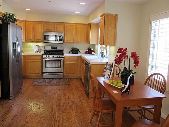 Spacious and bright end-unit townhome, with 3 spacious bedrooms and 2.5 baths, is ready for your immediate move-in. Wood floors throughout and refreshed interior paint including doors. Enjoy hearing the birds throughout the day in this park-like community at Redwood Shores. This tri-level home has high ceilings, lots of windows letting the sunshine in, plantation shutters, and has a 2-car garage with plenty of storage spaces. Enjoy the convenience of indoor-outdoor lifestyle with the living room sliding door leading to an outdoor deck where you can set up a table and/or chairs to wind down your day. Dining Room overlooks the living area with high ceiling. The kitchen has plenty of natural light with lots of cabinets, counter space and stainless steel appliances. The family room is desirably next to the kitchen. The family room has built-in entertainment shelves for your use. Enjoy privacy with all bedrooms on the top floor. Primary suite overlooks the landscaped greenery of the common area with no neighbors directly looking into your room. Full bathroom with double sink and shower over tub. Hallway that leads to the 2 other bedrooms has storage spaces too. This home has access to its community pool, trails, and Redwood Shores schools (tenant to verify). Pet/s might be considered. Private showing by appointment only.