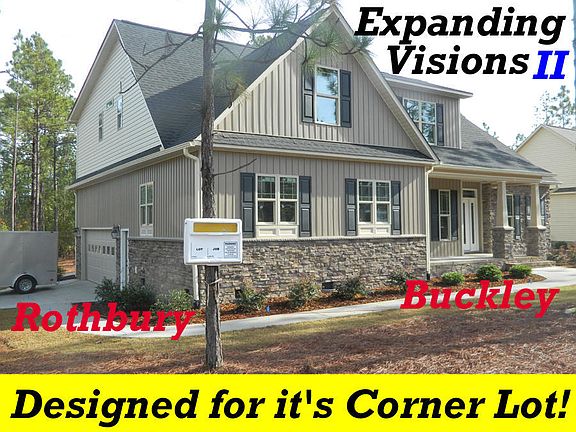 ''EXPANDING VISIONS II'' at Newbury Ridge Subdivision. This Craftsman styled home sits nice on it's corner lot. Corner Country Kitchen & Breakfast overlook beautiful yard. Dining Rm/front activity Rm/ Family Rm connects to Screen Porch. Master Suite (with Artesian Shower) , 1/2 Bath, & full laundry on 1st Floor. UPSTAIRS: 5 BRs (or use one as Upper Activity Rm) and 2 jack & jill baths! Stacked Stone & Board'n'Battin' siding. Hardwood Floors! Fine moldings. Sprinkler System. NOW FINISHING -READY NOVEMBER 15th! ''EXPANDING VISIONS II'' at Newbury Ridge Subdivision in Whispering Pines. This Craftsman styled home is located on a beautiful level corner lot. The front of the house faces Buckley Court. The side garage has it's driveway off of Rothbury Dr.