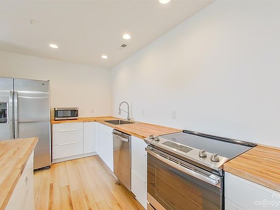 Run don't walk to this one-of-a-kind IMMACULATE first-floor end unit one-level condo in the HEART of the Historic District of Downtown Concord! NOSTALGIA meets URBAN w/ the crisp white palette and ALL NEW everything! This 2BR 1BA condo is open-concept living at its finest, and is flooded with light! The kitchen is truly a show stopper w/ an oversized island that seats three comfortably & has tons of storage! The Roberto Fiore Italian soft close high gloss cabinetry, Kraus kitchen sink with industrial faucet and push button garbage disposal, maple butcher block countertops, new GE appliances, LED Lights w/dimmer are wow factors! Enjoy the Lanier Hickory Smartcore LVP flooring throughout! The bedrooms have 13.5' ceilings & 9' windows! HOA maintains the landscaping and exterior. Roof was replaced in 2018. You'll love the walkability to Union Street, Cabarrus Creamery, & several Breweries & restaurants! Gibson Mill and the greenways are just a short drive. Investors welcome! See 3-D tour!