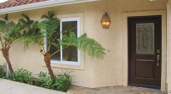 When you walk through the lush tropical front yard and through the stacked stone walk-way you may think you are walking into a beach side storybook....but it's real! This beautiful single story home EXISTS in the sought after neighborhood of Montigo on a single loaded street with only one side neighbor. Talk about privacy! Enter through the beautifully hardscaped front walk way to the huge private side yard patio with plenty of room for entertaining. Inside, enjoy vaulted ceilings, sky lights, and OCEAN VIEWS. Lots of open and bright airy space. Formal dining area looks through living room to share its views of the gorgeous in ground spa with waterfall. Step outside through the large sliding door and watch the amazing ocean sunsets and the surrounding hill views light up as dusk settles in. Go to the beach, enjoy nature with a stroll on the neighborhoods close walking trails. End your day surrendering to the master bedroom with another vaulted ceiling, more ocean views and watch the spa waterfall over the stacked stones through another sliding glass door. All but two windows have been replaced with dual pain windows. Owners just spent over $27,000 to help with any maintenance that could possibly be left. This is not a dream.... but a dream come true!