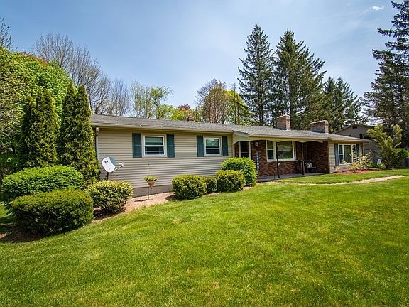 Don't miss out on this beautifully maintained 1550 sq ft ranch home with 2 car attached oversized garage. The eat-in kitchen offers stainless steel appliances, granite countertops, and tile flooring. The dining area has Harwood flooring with sliders out to a 12x24 PT deck. The living room has HW floors and a beautiful Bay window and fireplace. Cathedral ceilings and open concept floor plan create a very roomy feel to this property. The Large family room (separate electric heat zone) with picture window is a perfect play room/Den. Three Bedrooms and full bath complete the main level. The basement offers an additional bonus space for relaxing or entertaining. A pellet stove keeps this area warm and cozy! Anderson replacement windows, Burnham boiler, and a lovely level yard on a corner lot make this property a true treasure! FIRST SHOWINGS SAT 5/20