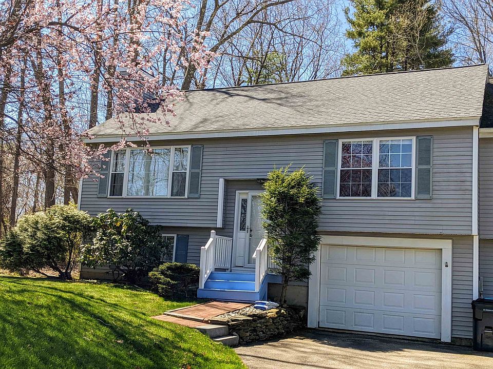 Lovingly maintained three bedroom CONDEX with lots of space and NO condo fees. The first floor boasts a huge fireplaced living room, kitchen, an updated full bath, two large bedrooms and a sunlit dining room leading to the generous sized outside deck and yard space. The lower level features a large primary suite with a 3/4 bath, a separate laundry room and mudroom with direct entrance to the one car garage. This home is bright and sunny having oversized daylight windows and sliding doors in the dining room. The sellers have maintained this home with fresh paint, new carpeting on first floor living space, lower-level bedroom and entryway along with new flooring in dining room. The home has a one-year-old roof, updated septic/leach area, vinyl siding, new washing machine and much more. There is lots of yard space in the front and back with privacy all around. Storage isn't a concern with space under the large outside deck, in the pull-down attic area and under the lower-level stairs. Privately set back from the road and conveniently located to Route 101, Portsmouth and all the dining and shopping needs. This is a great property to call home within the SAU16 School district. This is a shoes OFF showing property.
