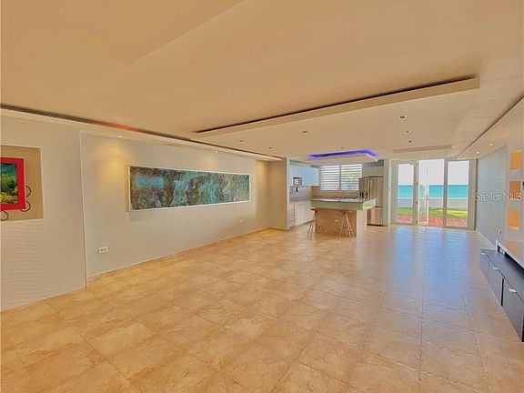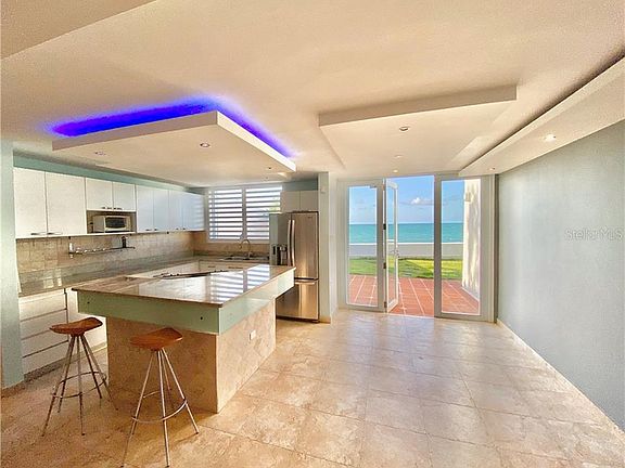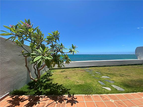 Unique oceanfront experience in San Juan. The home has a modern, open layout with a beautiful patio that opens to the sea, a green lawn and an additional lateral terrace. 3 spacious bedrooms convertible to 4, and 3 full bathrooms. Partially remodeled. Two parking spaces. Piazzetta Condominium is within a beautiful gated community on #1 Bucaré Street and is comprised of six apts. total. The home is one the ground level and has a comfortable private entrance. Full power generator and water cistern. Property Tax $1,955.44; HOA $521