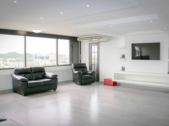 Remodeled 2-story Penthouse apartment which enjoys stunning views of Guaynabo City and the San Juan Harbor from all across the property. The first floor of the apartment opens up to an open concept living and dining area which has side to side windows all across where you can appreciate the lush greenery of the Guaynabo and San Juan areas. All three bedrooms are located on the first floor along with 2 of the 2 1/2 bathrooms. The Master bedroom has great amounts of space with potential to create a personally designed tranquil and comfortable resting space. The master bedroom also has an ample walk-in closet and a bathroom with a jacuzzi tub. The second floor consist of 1000 sq ft of covered and uncovered terrace ideal for gatherings, barbecuing, and enjoyment of wine nights under the stars.