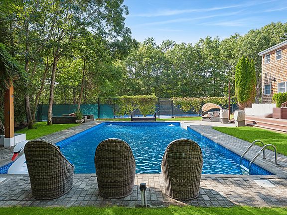 Rental Registration #: RP241585 Situated on an acre in the sought-after Southampton Pines neighborhood, this spacious two-story home with pool and tennis offers everything you need for a great summer. The open-concept design of the home allows for seamless flow between the living spaces, making it ideal for entertaining. Enter to a double-height foyer flanked by formal living and dining areas. The chefs' kitchen with granite countertops, gas range, large pantry, beverage refrigerator and coffee bar flows into an additional dining area and an inviting den with generous seating, a large tv, fireplace, and views of the pool. Upstairs are four en-suite bedrooms. The primary bedroom suite has a king-sized bed and a beautiful bathroom with a shower and bathub. Three additional en-suite bedrooms with Queen-sized beds and shower/tubs complete the upstairs. The fully fenced backyard is a perfect set-up for summer fun with a heated, vinyl pool, new all-weather tennis court, fire pit, and an ample deck and pergola large enough to accommodate large gatherings. Enjoy proximity to fabulous Town of Southampton beaches, fine dining, gourmet grocery stores, farm stands, and neighboring villages. **Perfect US OPEN Golf 2026 rental-8 miles away/14 minute drive.**