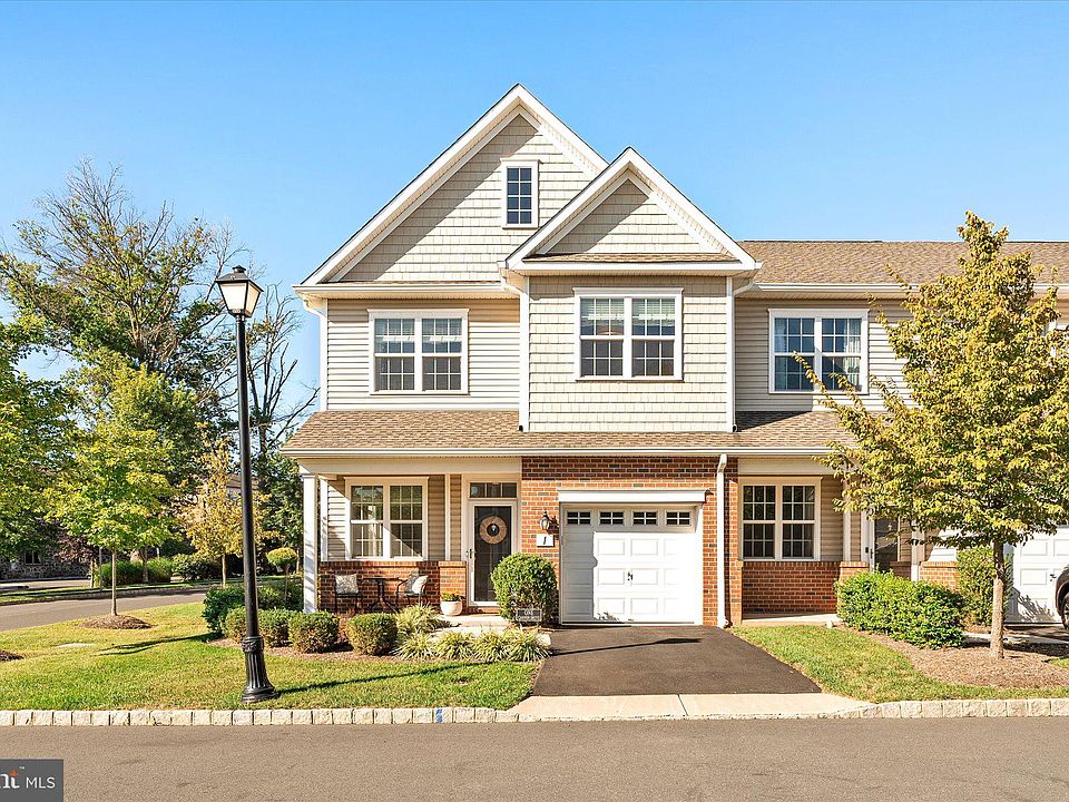 Don't miss this beautiful end-unit townhome Rosedale model in the desirable Heritage at Pennington community. As you enter this pristine 3 bedroom, 2.5 bath home you enjoy a flex space - this space could be used in so many ways…a music room, play room, wine tasting room, formal living room, or any way that works for you. From there you enter the luxurious open floor plan - the kitchen with custom white wood 42” cabinets with soft close, quartz countertops, stainless steel appliances, beverage refrigerator, custom glass mosaic tile backsplash, under cabinet lighting and an enormous island makes for a fabulous work place for the culinary enthusiast or for easy entertaining. The dining space opens to the custom paver patio through sliding glass doors. The spacious and inviting living room is open to the dining area and kitchen. It has a custom brick wall, gas fireplace, it's wired for TV above the fireplace and on the brick wall, and has built-in shelving. Finishing off the first floor is a powder room with a solid wood custom vanity and Schumacher wallpaper, a pantry that has truly been customized, an under the steps closet with a freezer and water softener tucked away. There is also a garage with an EV charger, whole house surge protector, and slot wall/custom overhead storage units. Upstairs is a spacious primary suite with two walk in closets with custom shelving, a luxurious bath with double sinks and a walk in shower. Two additional bedrooms, each with custom window treatments, custom closets, smart lighting, and wired for fans are located on the second floor. There is an additional full bathroom, Laundry with a W/D and tankless hot water system that completing the second floor. Additional features include: Custom window treatments throughout. Custom closets throughout Custom lighting throughout, including recessed lighting, designer light fixtures and smart lighting. 9’ ceilings throughout. Smart thermostats Wood floors throughout Whole house security system The COA is responsible for all exterior walls, roof, snow removal, and landscaping. The fireplace, chimney and flue are AS IS with no known defects. 10/10 rated Tollgate Grammar School in the highest rated Hopewell Valley School district This home is in walking distance to Pennington shops and restaurants - as well as easy access to major roadways and train stations. This home will not last!
