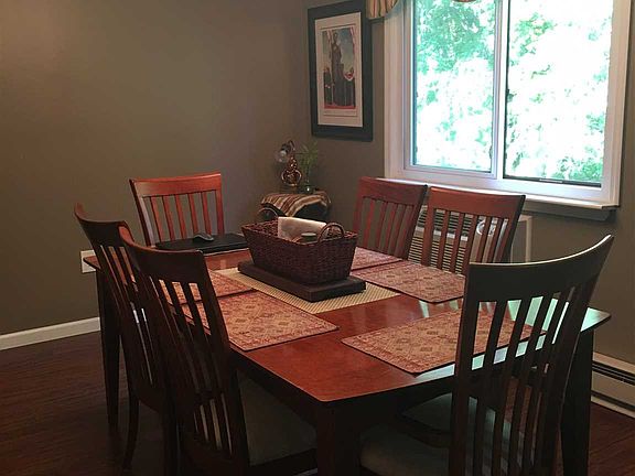 Immaculate end unit lets the sun in. In the nice weather sit on the deck over looking the back wooded property. Enjoy entertaining in the large dining room that flows into the spacious living room. The kitchen is packed with cabinets. You will love the remodeled bath with oversized tile shower. Other updated included the wide plank laminate w/sound barrier, a/c's, raised 6 paneled doors w/new hardware, new windows. Two spacious bedrooms w/great closet space and a great feature is a full size w/d right in the unit making laundry a breeze. The community offers a pool for those warm summer days. Minutes to Metro North, I84 the Taconic and shopping this is the one for you.