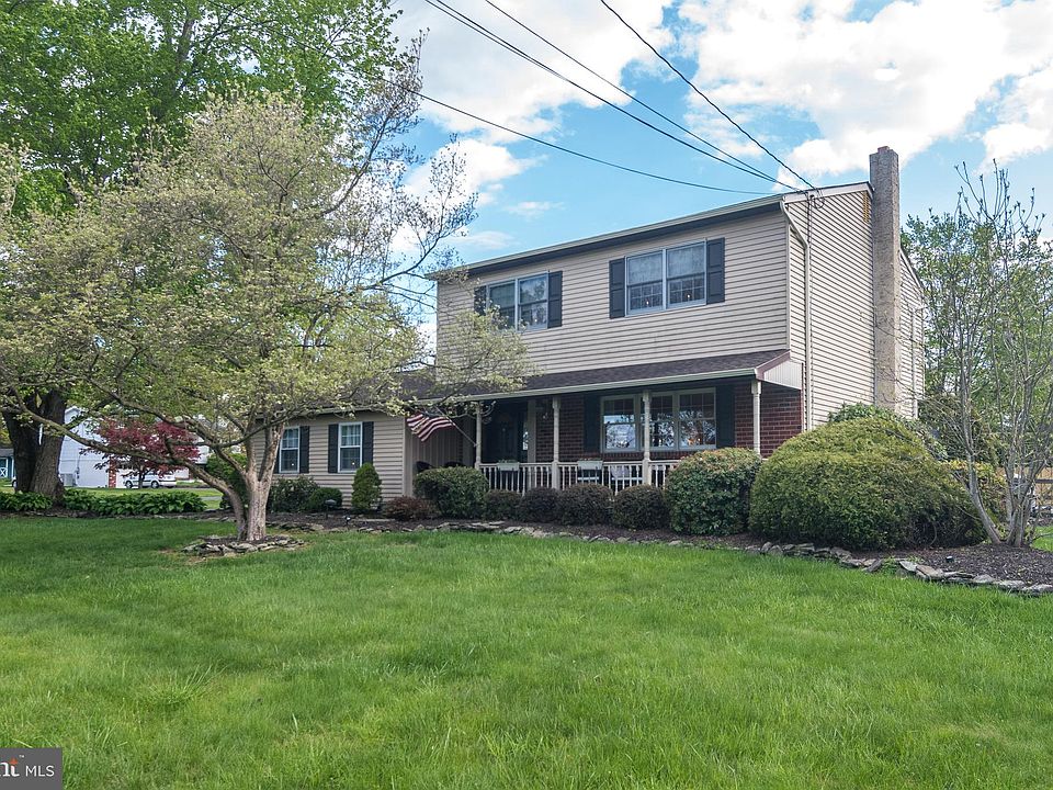 Welcome to this exceptional Milford Township home! As soon as you step onto the rich mahogany floored porch you will know this home is delightful inside and out. What a great front porch to lounge in over that first cup of morning coffee! The entrance to this beautifully maintained 2-story colonial on a corner lot is an elegant dark brown stained front door complete with side lights. Step inside to the spacious hardwood foyer. The beautiful oak hardwood floors have been refinished and continue throughout this home. Your first room is an inviting living room with a wonderful front wall of windows streaming desirable natural lighting. There is traditional crown molding throughout the first floor. Head back down the foyer into the charming kitchen where you will be greeted with handsome custom cherry cabinetry, stone back splash and granite counter tops. The SS range is dual fuel cooking with gas cook top and electric bake oven. Perfect cook appliance for the perfectionist cook and baker. There is a large storage pantry. The kitchen opens right into the dinning room trimmed in crown molding and chair rail. The dining room presents one of two sets of French doors leading to the backyard. The kitchen also opens with a step down into the warm and inviting family room. This charming room is trimmed in crown moldings and offers a classic beautiful brick wood burning fireplace flanked with white painted built in shelving. Seller has an estimate to easily change the fireplace to propane if desired. Step out the 2nd set of French doors to your backyard oasis! The brick -paver patio is perfect for your outdoor dining and barbecuing. What a summer you will have swimming in this beautiful heated concrete pool. This pool has been very well maintained and offers a new locked down safety cover (2017). Filter replaced (2018) new tile, coping and plaster work done and new heater(2004). A split rail fence surrounds this spacious parcel and there is a shed for your extra storage. Mature trees and bushes offer much privacy on this corner lot. Back inside the home an updated half bath and tiled floored laundry room with wash tub and side yard exit complete this wonderful flowing 1st floor layout. Head upstairs on the gleaming hardwood stairs. The master bedroom with hardwood flooring reveals a back wall of windows allowing plenty of sunshine and warmth. This room presents a spacious walk in closet and an updated full bathroom with beautiful dark cabinets and granite counters. There are two additional bedrooms both have hardwood under the carpet and spacious closets. The hall bath offers neutral white tile and a re-glazed tub completes this second level. The basement is partially finished for your additional room as an office, playroom or second family room. There is a gorgeous 15x15 ceramic tiled floor that enhances this space as well as dimmer lighting! Every bit of space has been considered with storage under the stairway. The unfinished portion of this basement offers a sump pump with battery back-up, a newer (2015) high efficiency hot water heater, a newer (2015) high efficiency Beckett oil burner and electric heat pump. This home offers oil and electric heat with some rooms offering baseboard electric. The roof was replaced in 2012. There is a super clean one-car garage with epoxy floor and attic storage. This home is located close to major highways, shopping some wonderful historic restaurants. This is an amazing home!