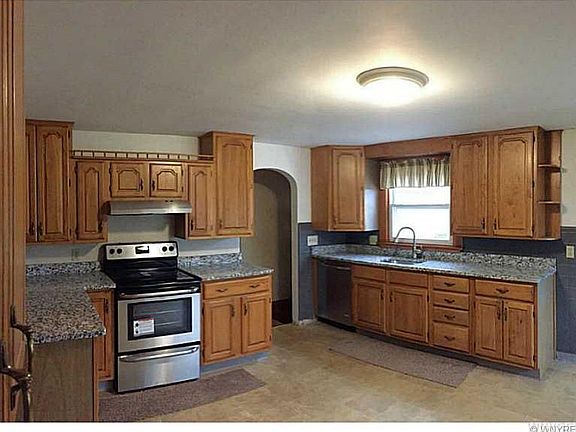 New! New! New! Looking for an affordable move in ready home? Here you go! Kitchen updates include brand new granite counter top and stainless steel appliances and fixtures. Bathroom has been given a complete make over (new flooring, ceramic tile, vanity, and toilet). Brand new carpet throughout, many new light fixtures and every room and hallway have been freshly painted from floor to ceiling. Possible large 4th bdrm in the basement, with more room to make extra living space. Attached 2 car garage and enclosed porch are also great assets of this home. AND in the Oakfield-Alabama CSD