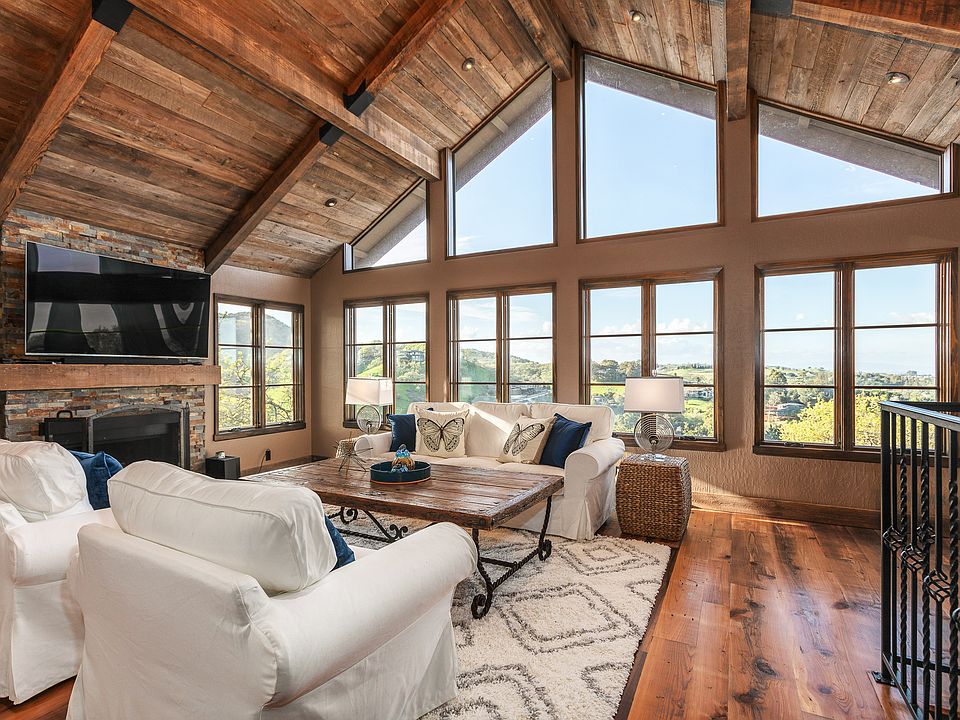 HUGE PRICE REDUCTION!Contemporary Chalet with Incredible Views! This stately property is tucked into 1.76 acres of natural splendor and views, views, and more views- all the way to water! Set back from the street and down a long private drive sits 1 Casa De Cima, custom designed to capture resort living. Rare and beautiful Missouri Barnwood adorns the floors and the vaulted ceilings in the main living areas. Contemporary meets rustic in this light filled chalet as natural light pours in through the newly installed, dual pane, floor to ceiling windows in the family room. An updated kitchen features stainless steel appliances and an abundance of cabinets for storage. The sprawling grounds include a sparkling saltwater pool, spa, full outdoor kitchen with Kegerator, gated sports court with floodlight, and drinking fountain (for the pup too!) While estate-like in privacy, this family home is only a 10 minute drive to Downtown Lafayette, and top-rated schools.