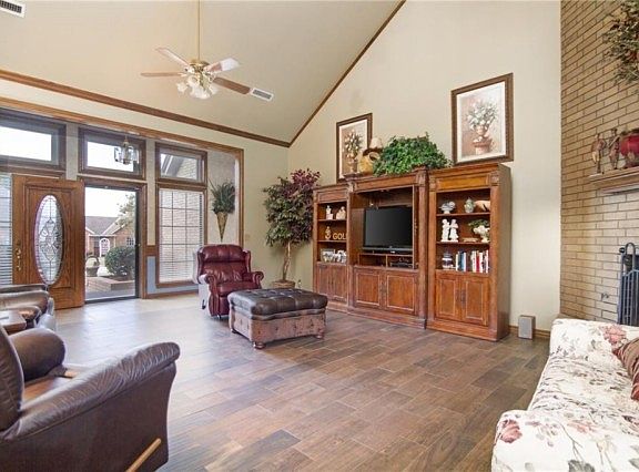 Gorgeous corner lot with side garage entry. Beautiful granite counter tops in the kitchen and in both bathrooms.Soaring ceiling in the living room with large corner fireplace. This home has a security system, asprinkler system and a covered patio.