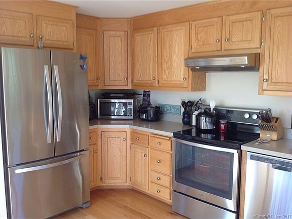 Desirable End Unit Townhouse in well maintained Juniper Landing! Come and see this Pristine turn key condo. This unit has all you need to feel at home. Wood floors throughout the first & second floor. Lots of natural light that makes for a warm cozy feeling. Slider in kitchen to side deck. Side entrance as well as entrance through garage. Multi-zone heating & cooling. Stainless steel appliances only 3 years old. New central air installed in 2015. New water heater installed 2016. Rec/play room below (not in square footage) is additional living space with walkout to yard. Lots of closet space. Garage under unit with open parking. Pets are welcome here! You do not want to miss this opportunity to own this impeccable condo. Close to town, shops, dining, Interstate I91, and Merritt Parkway.