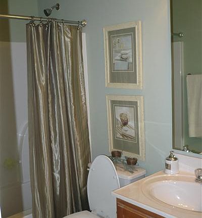 Spacious (former model) end unit w/ 2 owner's suites. Upstairs suite-garden tub/separate shower.Downstairs suite has 5' shower.On Pond. Also 3rd BR & big loft area.Kitchen has stainless appliances & quartz countertops. Upgraded carpet, faucets & lighting.Ceramic tile and Hardwood. Screened porch backing up to Pond.Dues include cable, phone, long distance, internet, pool, fitness room, rec center, irrigation.